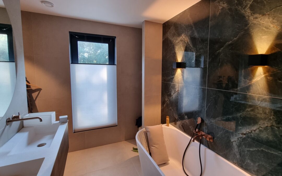 In dit geval is gekozen voor een lichtdoorlatende stof die wel privacy biedt. Voordeel van de top down/bottom up systemen is dat u de inkijk weg kunt nemen maar dat er wel veel licht de kamers in komt. Het opladen van de elektrische plissé ® gordijnen kan eenvoudig aan de voorzijde van het systeem, opladen is eens per 8 maanden ongeveer. De profielen kunnen in meerdere kleuren geleverd worden, passend bij u raamkozijnen.